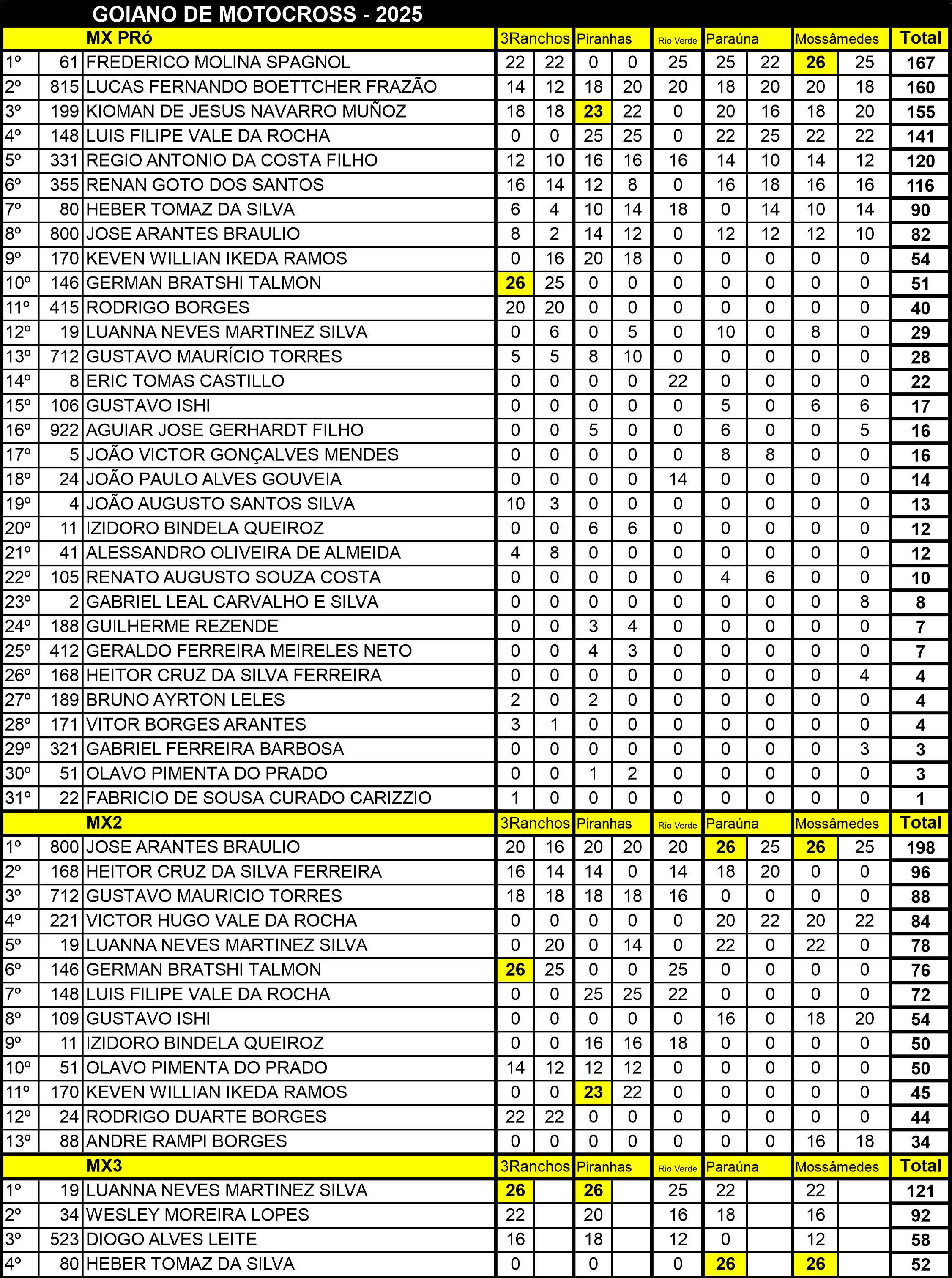 Classificação Final MXGO 2025